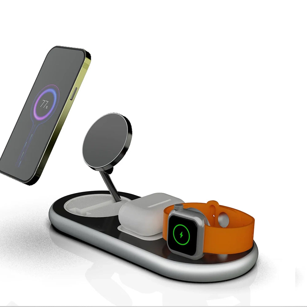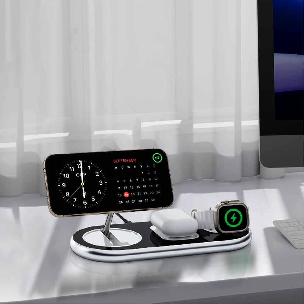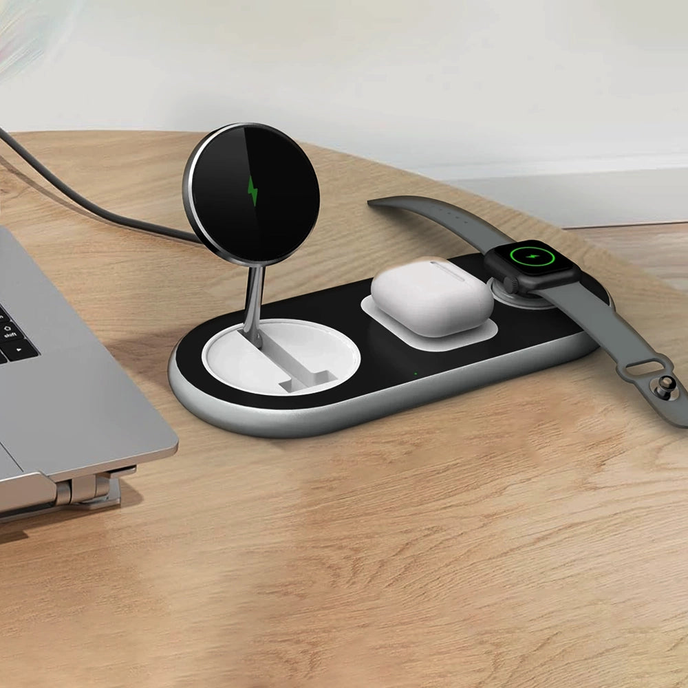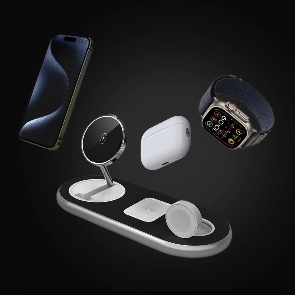 FlexiCharge is your one-stop charging hub, catering to your smartphone, smartwatch, and earbuds simultaneously. Never worry about juggling chargers again!