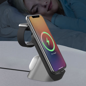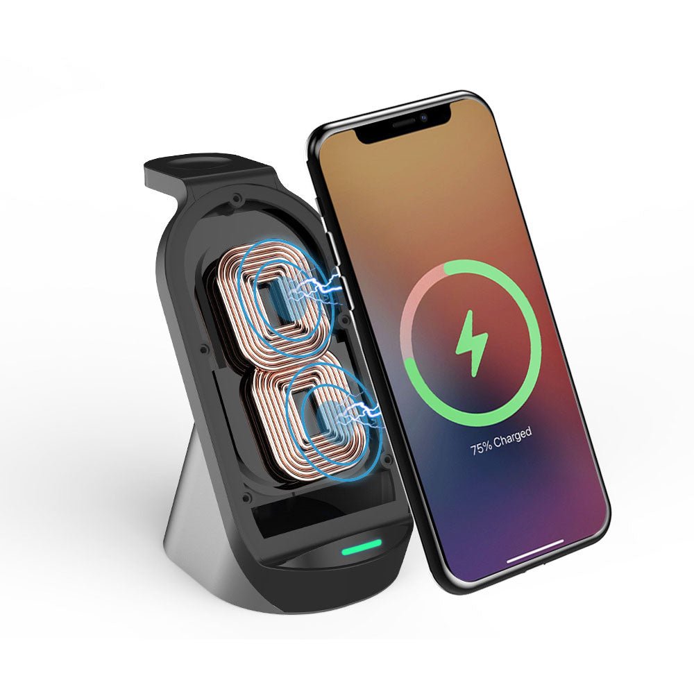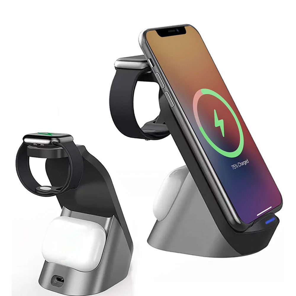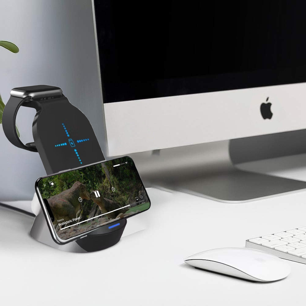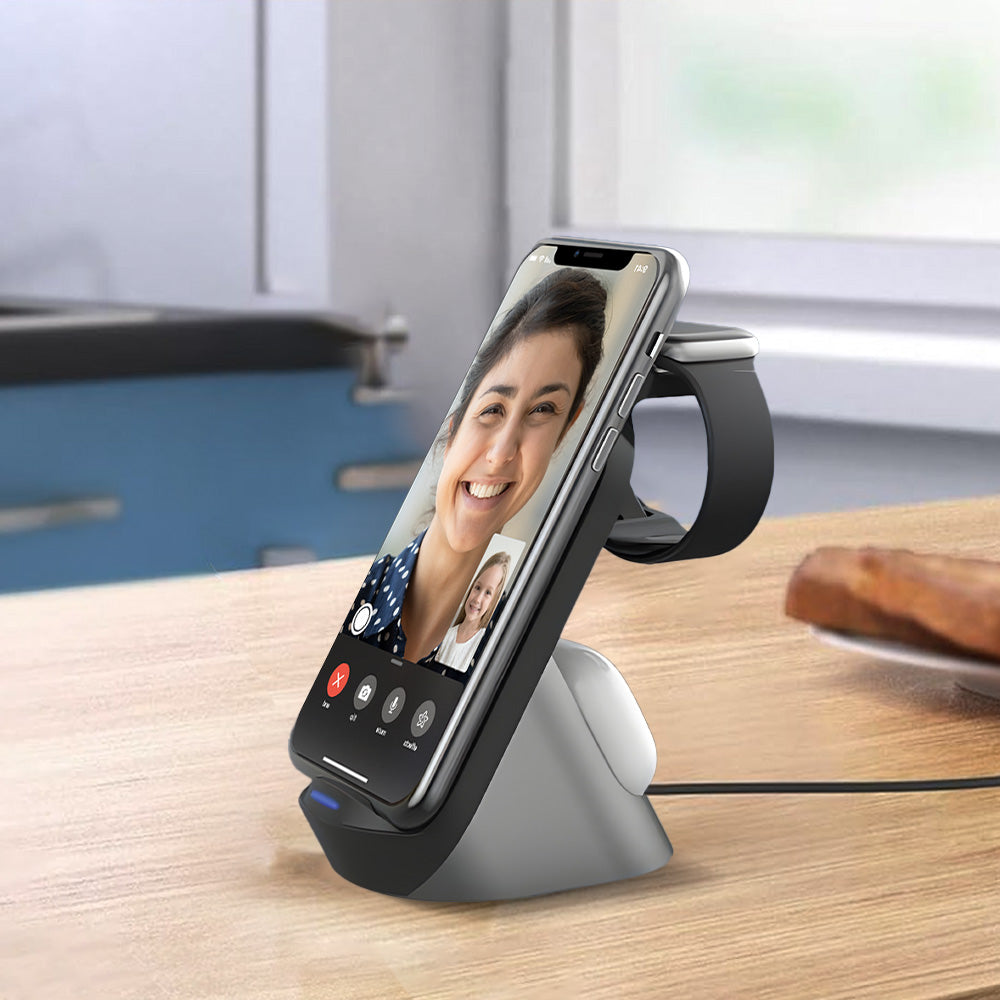 • This elegant charging station powers your iPhone, Apple Watch, and AirPods simultaneously all without the clutter of cables. With MagSafe alignment and dual-coil 15W fast charging, just drop your device on the pad for instant, secure charging even with the case on. Engineered with intelligent current matching, the iNest adapts power output to each device to maintain battery health. Its auto power-off feature prevents overcharging, switching to protection mode when your devices are fully charged. Charge in portrait or landscape mode while you stream, scroll, or video call, and stay safe with smart foreign object detection.