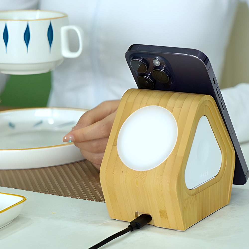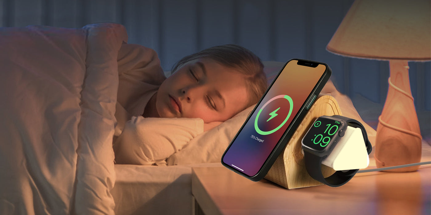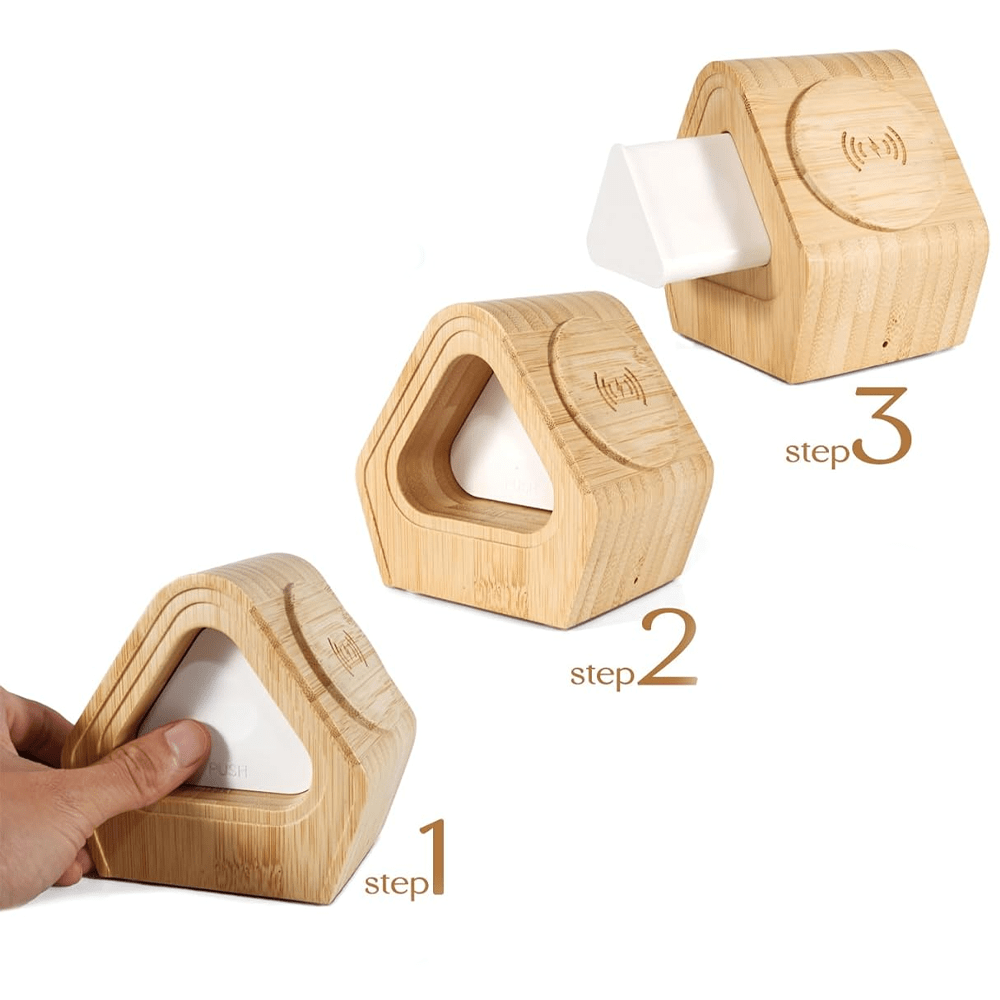 Keep your space clutter-free with a discreet slide-out dock and enjoy a calming glow that makes it perfect for nightstands or workspaces.