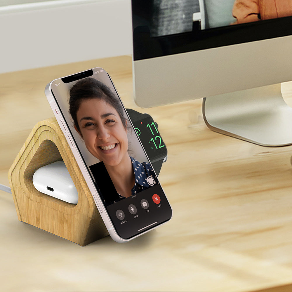Experience fast 15W charging that snaps your iPhone securely into place, whether standing upright for calls or sideways for streaming.